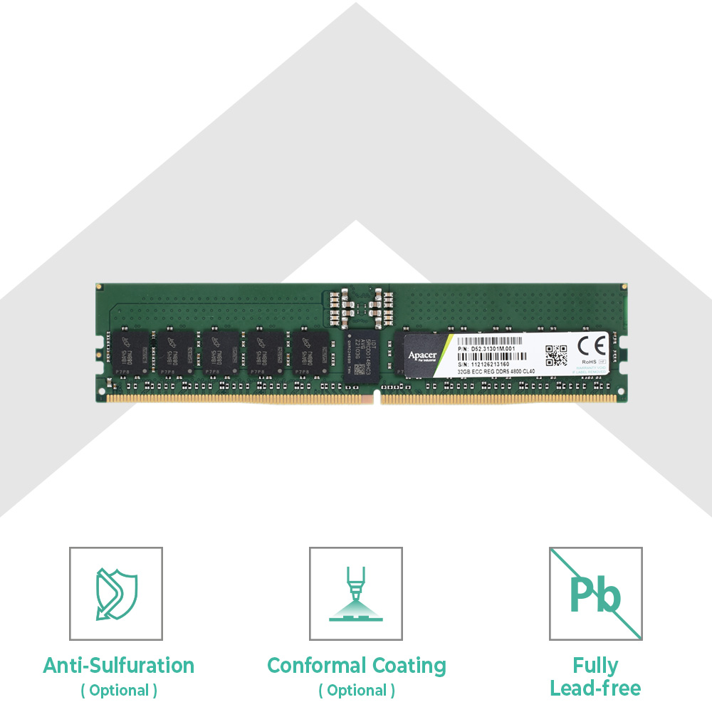 Apacerの完全鉛フリー産業用DDR5 RDIMMは、高品質の純正DRAMチップを採用し、超高性能、容量アップグレード、低消費電力などの特徴に加えです。