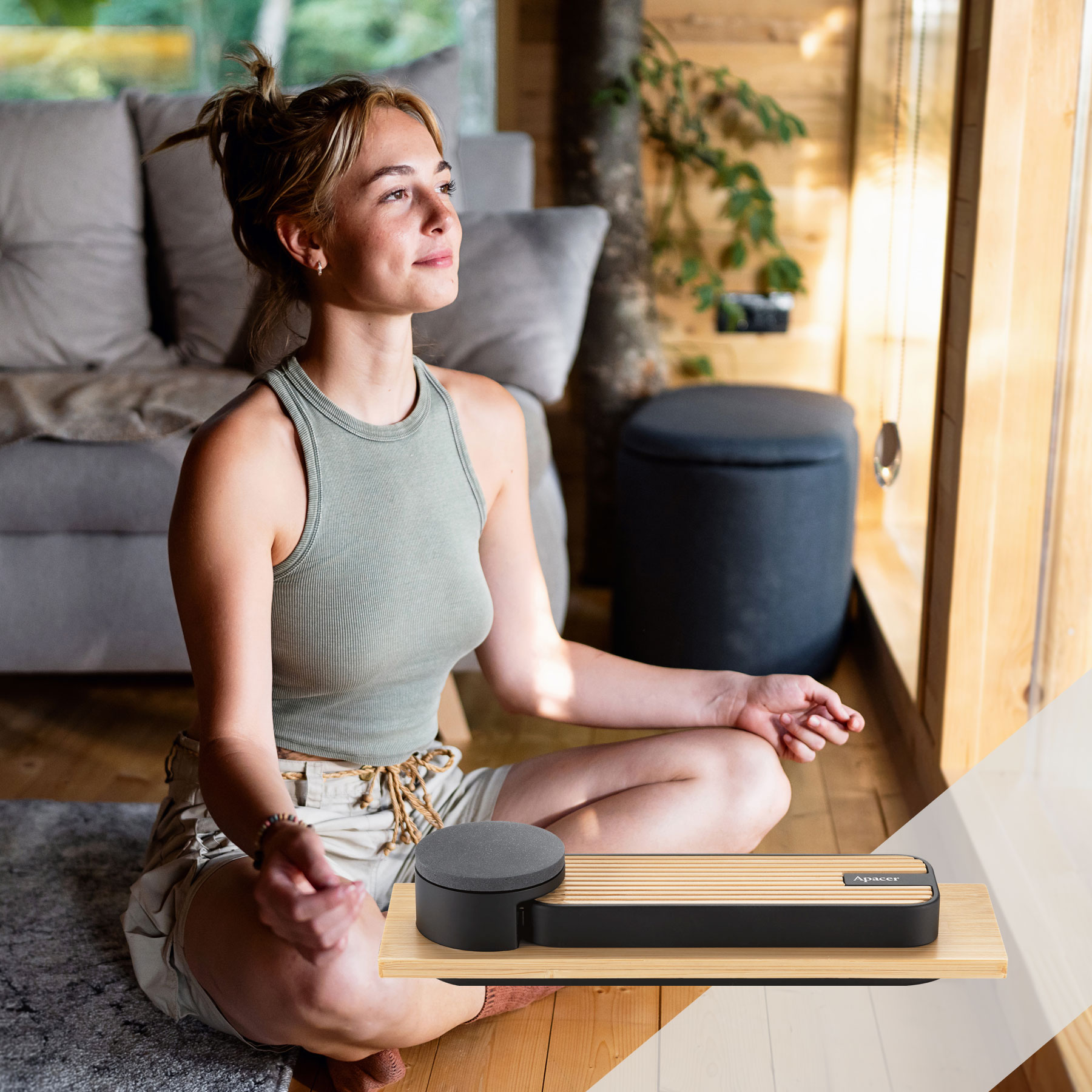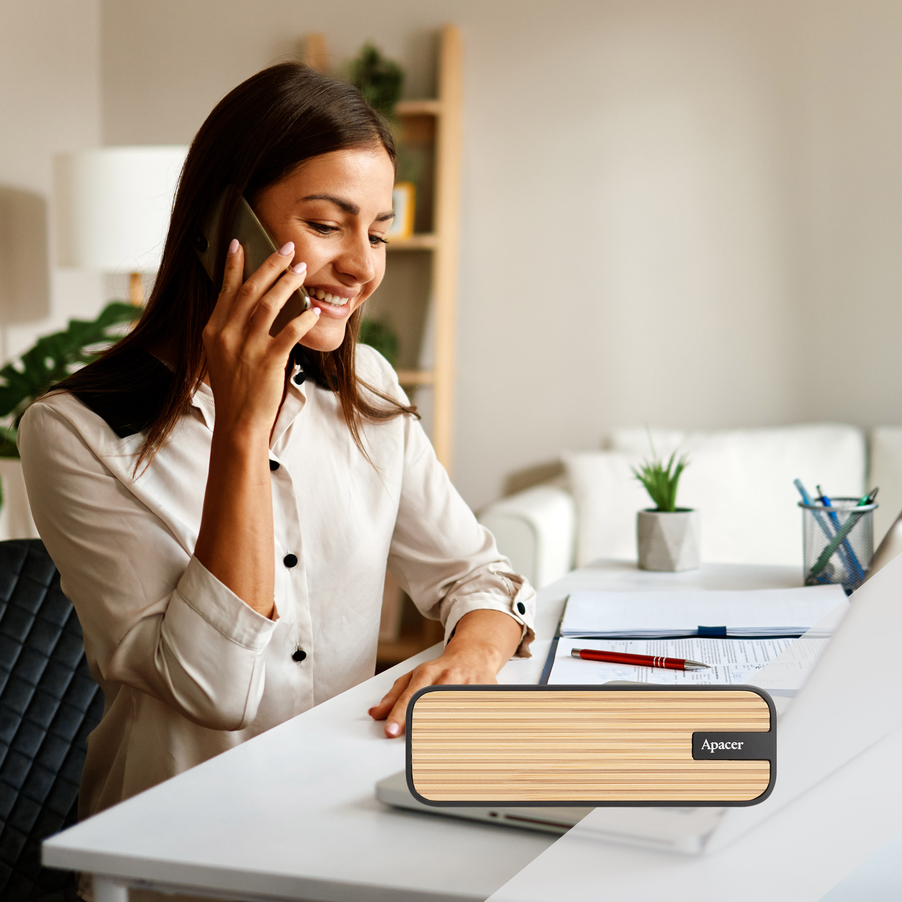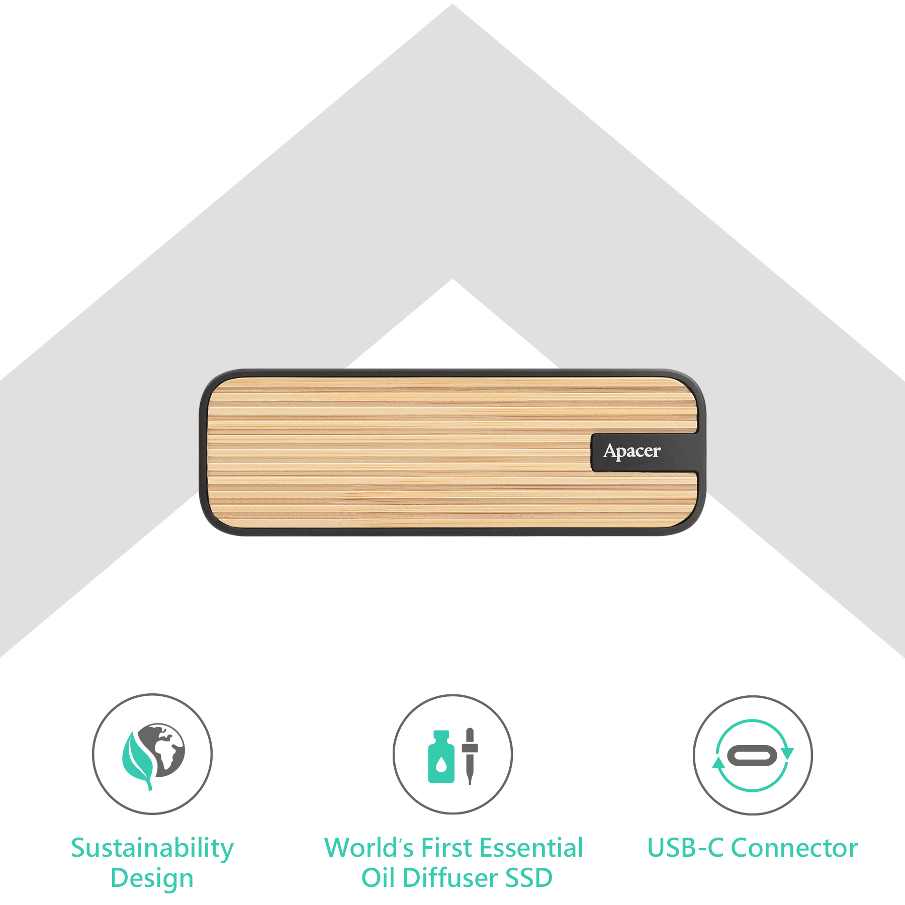 천연 대나무, 재활용 저수지의 토사, PCR 플라스틱 및 지속 가능한 금속으로 제작되어 Apacer의 환경 친화적 디자인 혁신에 대한 실천을 보여줍니다.