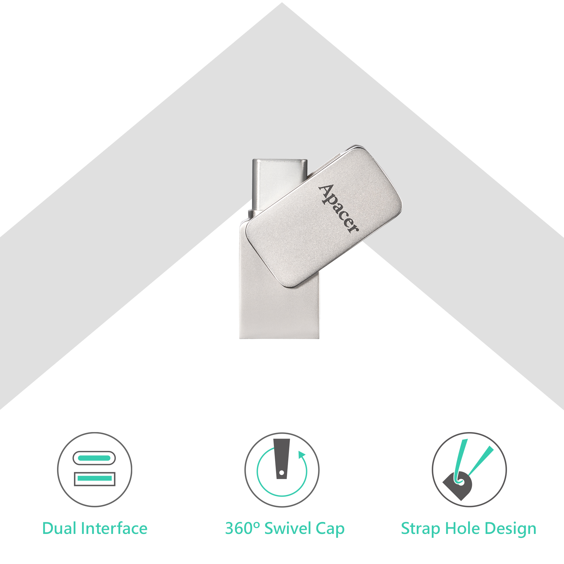 AH181 USB 3.2 USB-C 듀얼 플래시 드라이브는 한쪽에 USB-A 커넥터, 다른 한 쪽에 USB-C 커넥터를 갖추고 있으므로 초슬림 노트북, 모바일 기기, 전통적인 컴퓨터 간 파일 전송이 간편하며 인터페이스 세대 차이로 인한 제한이 없습니다.