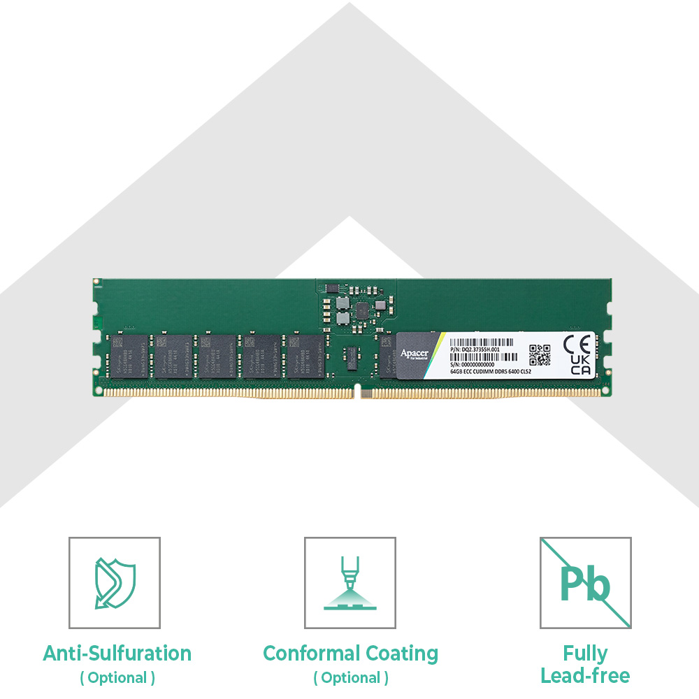 ECC UDIMM (ECC Unbuffered DIMM)模块符合JEDEC标准设计,专为需要高度稳定性运作的服务器与工作站设计。采用高质量DRAM原厂芯片制造,同时支持ECC功能,能侦测并校正数据错误,内建温度传感器(Thermal Sensor) 监控内存条温度,防止内存模块过热,增强内存模块的可靠度。