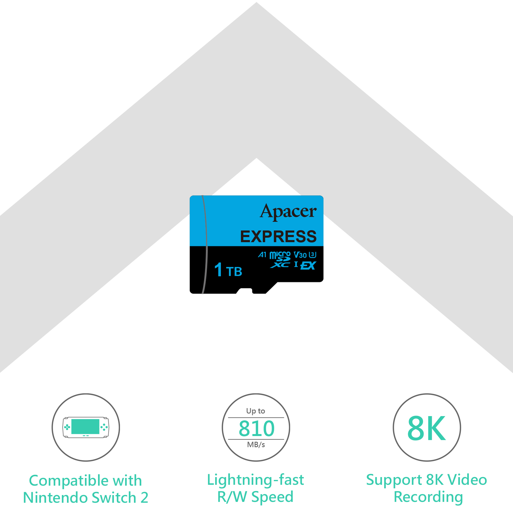 Apacer microSD Express is compatible with Switch 2*, handheld consoles, and mobile devices, delivering a smoother and more enjoyable user experience.