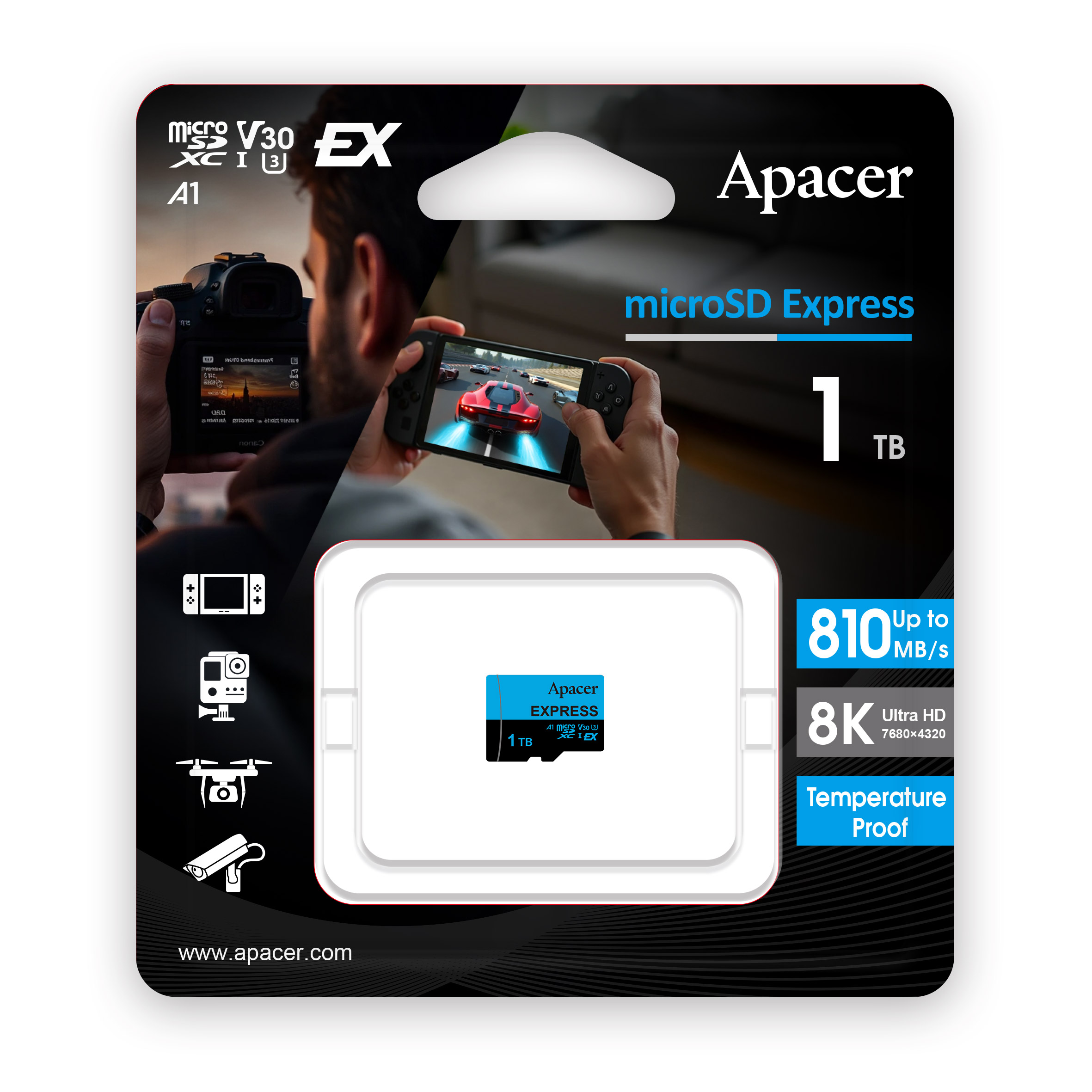- 有別以往microSD card,讀寫速度可高達810/700 MB/s