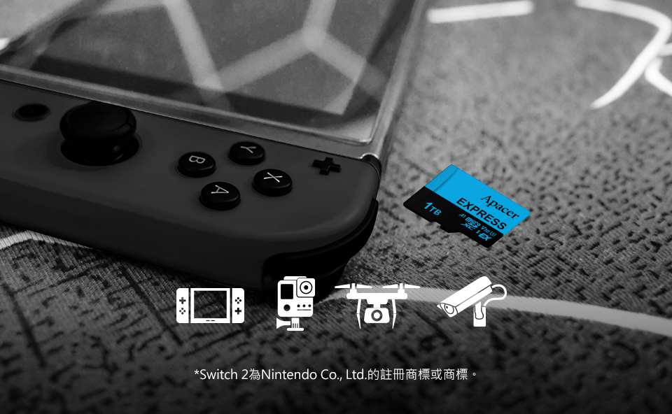 Apacer microSD Express相容於Switch 2*、各式掌上型遊戲機與行動裝置,提供更流暢、更愉悅的使用體驗。